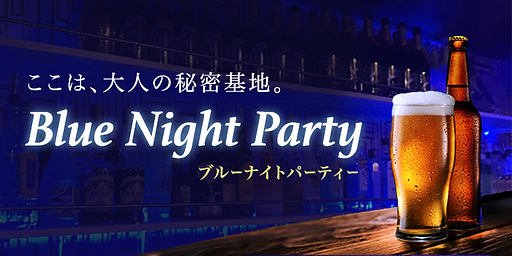 夜空を思わせる濃紺、海のように広がる青、 そして幻想的に輝くネオンブルー。 様々な「青」が織りなす世界の中で、 盛り上がるお話と洗練されたドリンクを楽しみながら、 青がもつ華やかさを味わっていただけます。